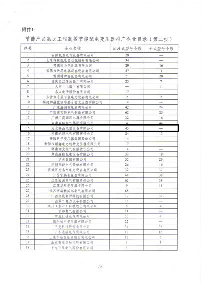 在公布的目錄中,河北高晶電器設(shè)備有限公司有45個油浸式型號入圍,這說明我公司自主研發(fā)的能效產(chǎn)品得到了國家政府部門的肯定,彰顯了我公司產(chǎn)品質(zhì)量和技術(shù)實力。